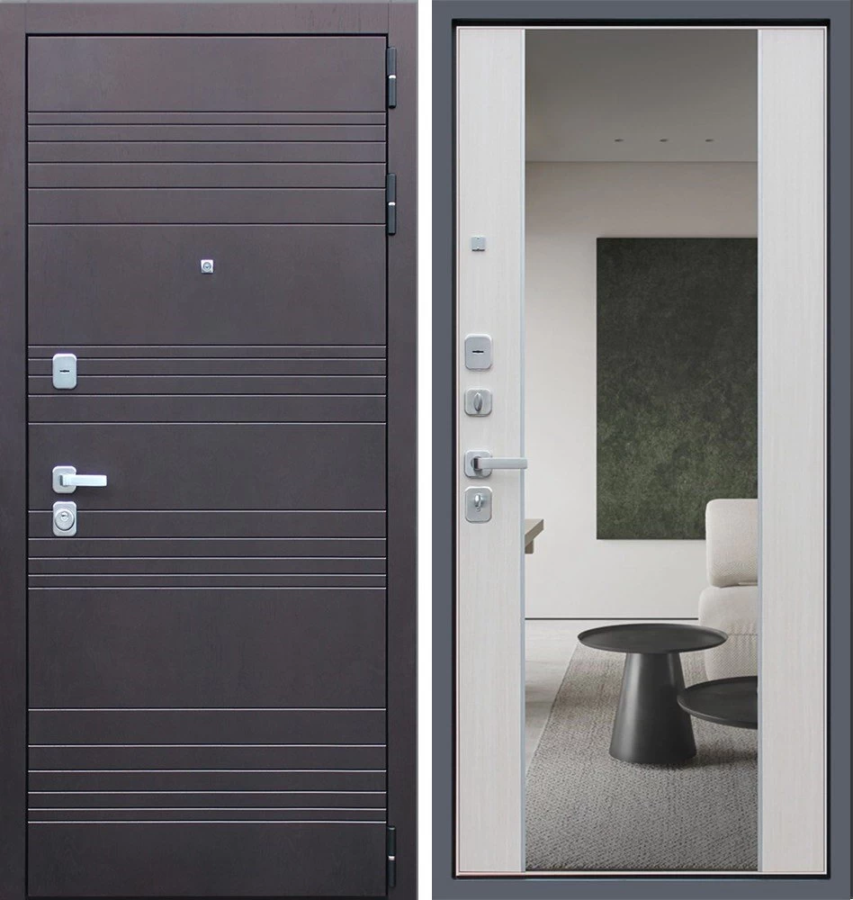 Надежная входная Дверь Дуэт с зеркалом премиум класса по цене 47 441 руб. Большая толщина стали защитит от проникновения в ваш дом, квартиру или коттедж. Используется очень качественная фурнитура: замки, цилиндры, ручки, защелки. Покрытие и отделка двери изготовлено под внимательным контролем производителя. Дверь имеет долгий срок службы и гарантию.