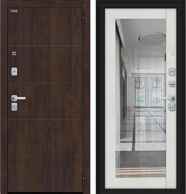 Надежная входная Дверь Браво Флэт/BChrome Almon/Bianco Melinga премиум класса по цене 42 891 руб. Большая толщина стали защитит от проникновения в ваш дом, квартиру или коттедж. Используется очень качественная фурнитура: замки, цилиндры, ручки, защелки. Покрытие и отделка двери изготовлено под внимательным контролем производителя. Дверь имеет долгий срок службы и гарантию.